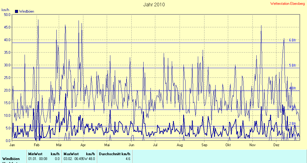 Verteilung Windstärke 2010 |