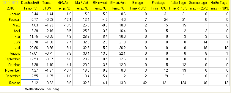 Temp. Min- Max- Werte 2010 |