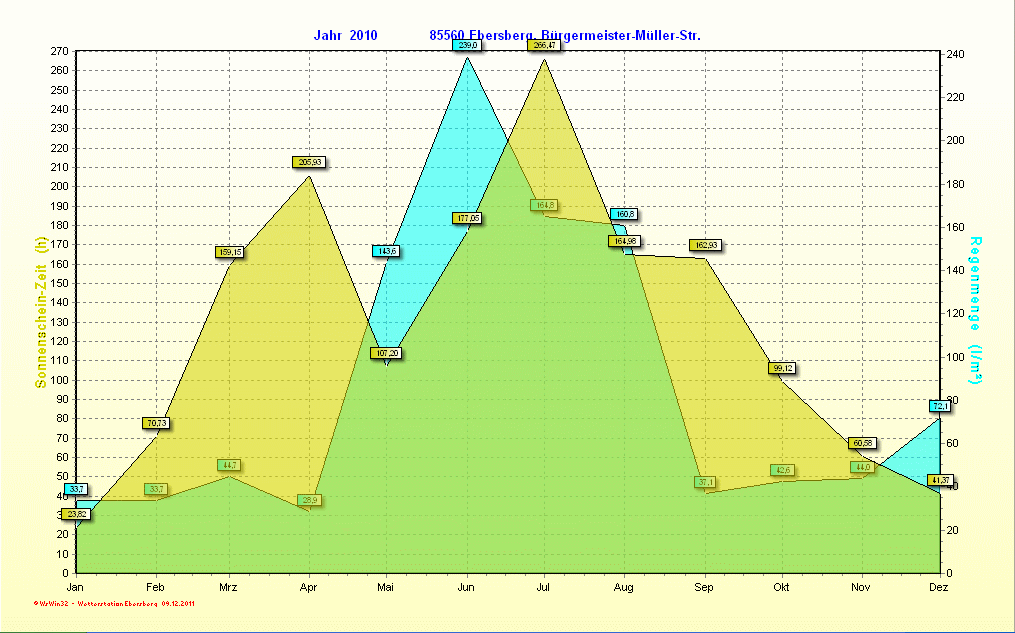 Monatl. Niederschläge und Sonnenstunden 2010 |