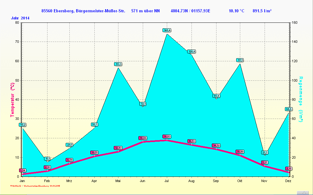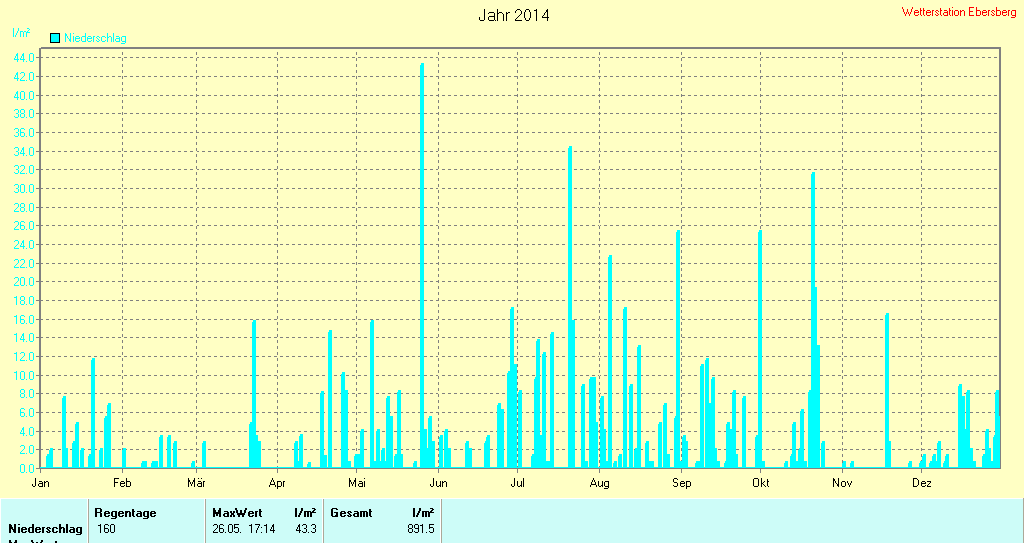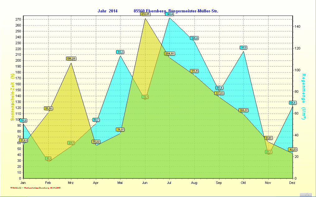 Klimadiagramm 2014 | Niederschlag und Sonne 2014 | |