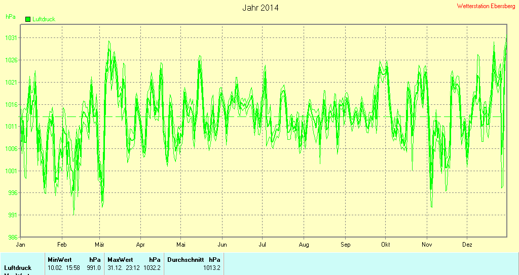 Niederschlag 2014 | Verteilung Windstärke 2014 | Luftdruck 2014 |