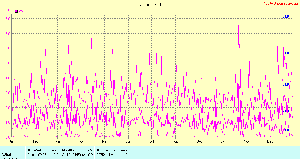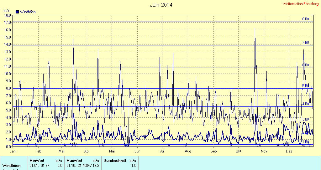Windstärke 2014 | Windböen 2014 | Windverlauf 2014 |
