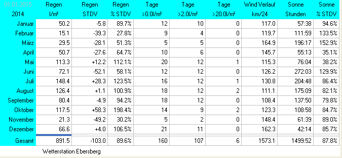 Taupunkt 2014 | Sonnenstunden 2014 | Windrichtungen 2014 |