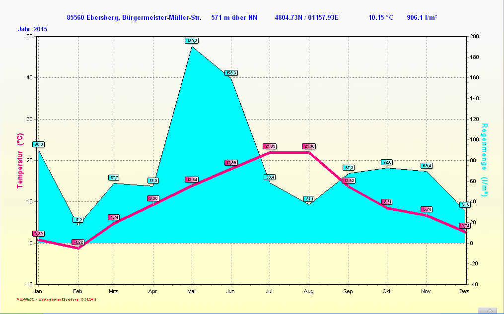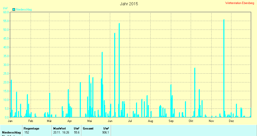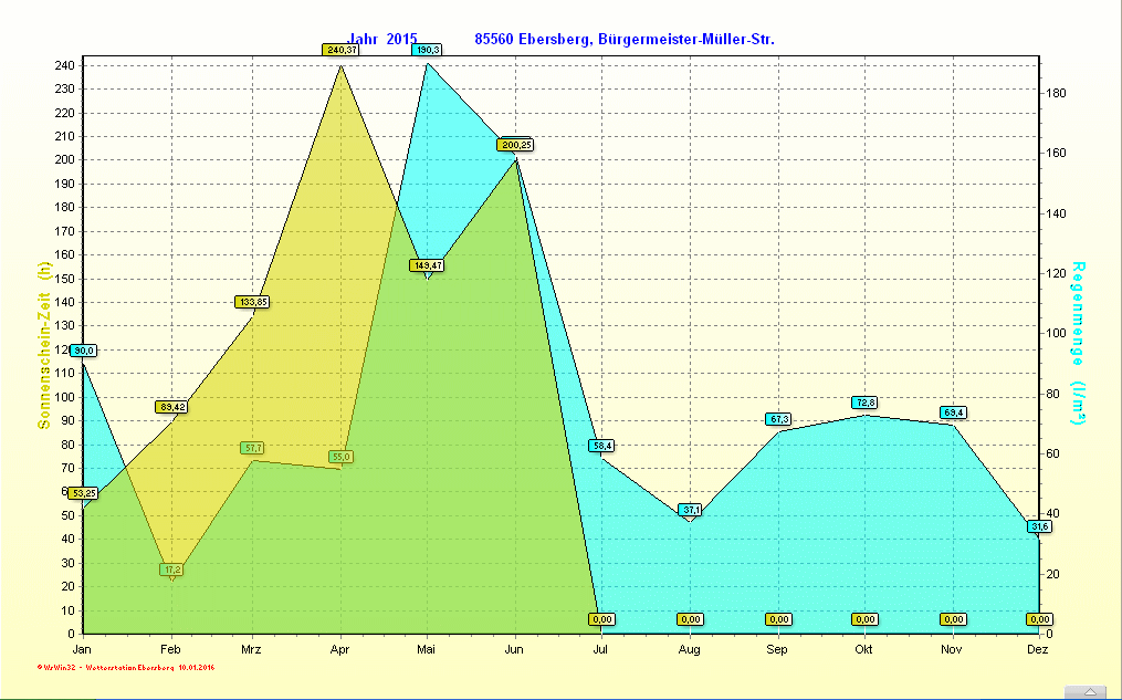 Klimadiagramm 2015 | Niederschlag und Sonne 2015 | |