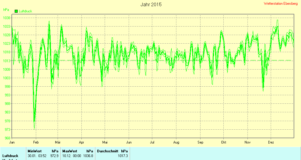 Niederschlag 2015 | Verteilung Windstärke 2015 | Luftdruck 2015 |