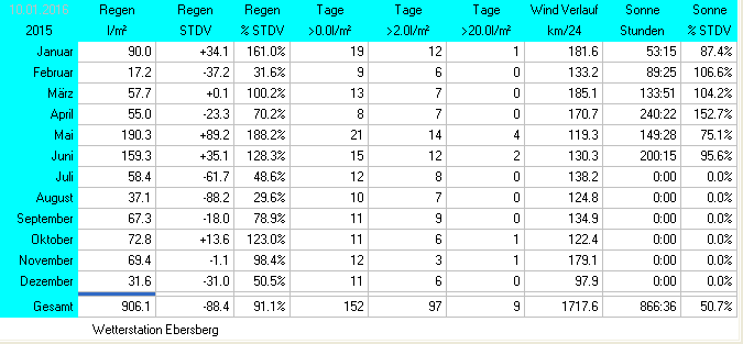 Taupunkt 2015 | Sonnenstunden 2015 | Windrichtungen 2015 |