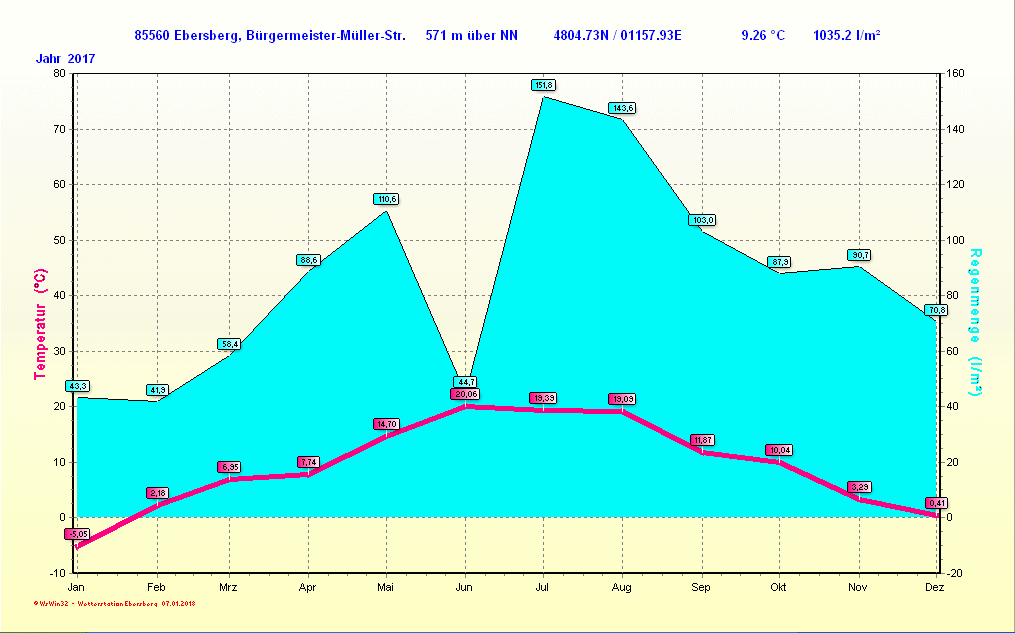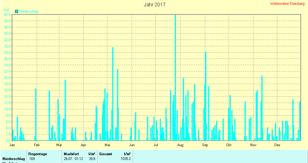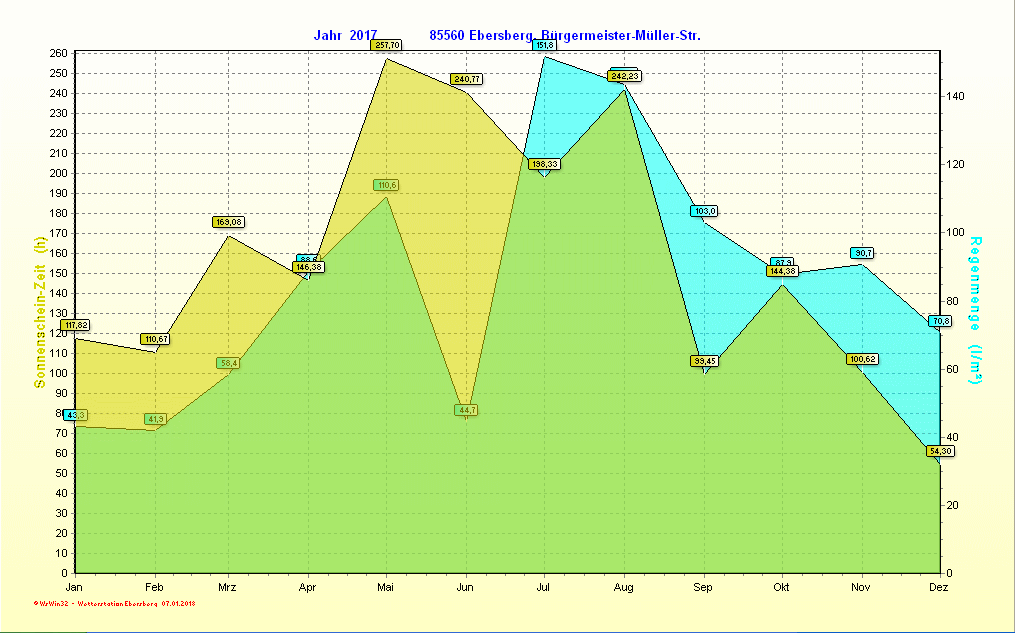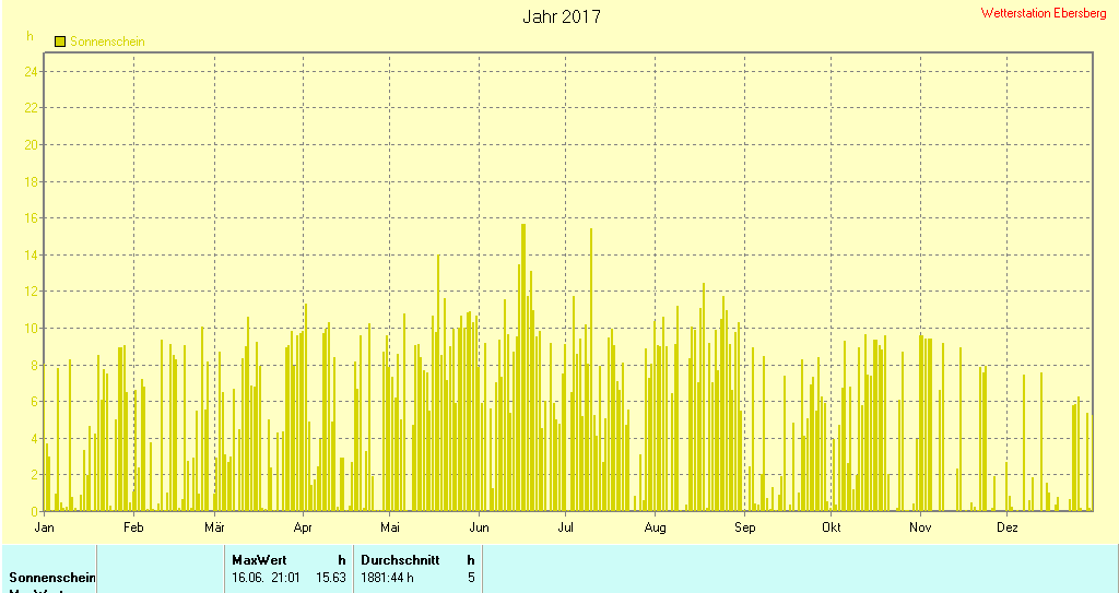 Klimadiagramm 2017 | Niederschlag und Sonne 2017 | |