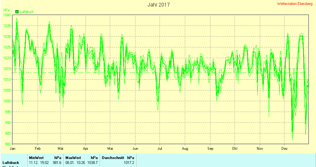 Niederschlag 2017 | Verteilung Windstärke 2017 | Luftdruck 2017 |