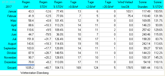 Taupunkt 2017 | Sonnenstunden 2017 | Windrichtungen 2017 |